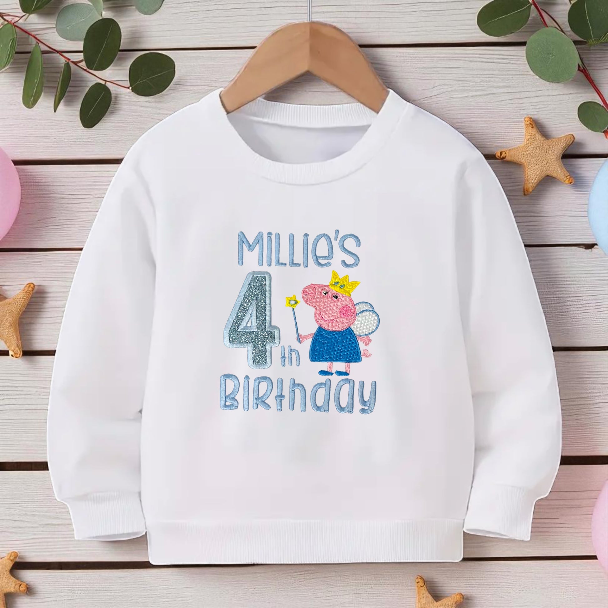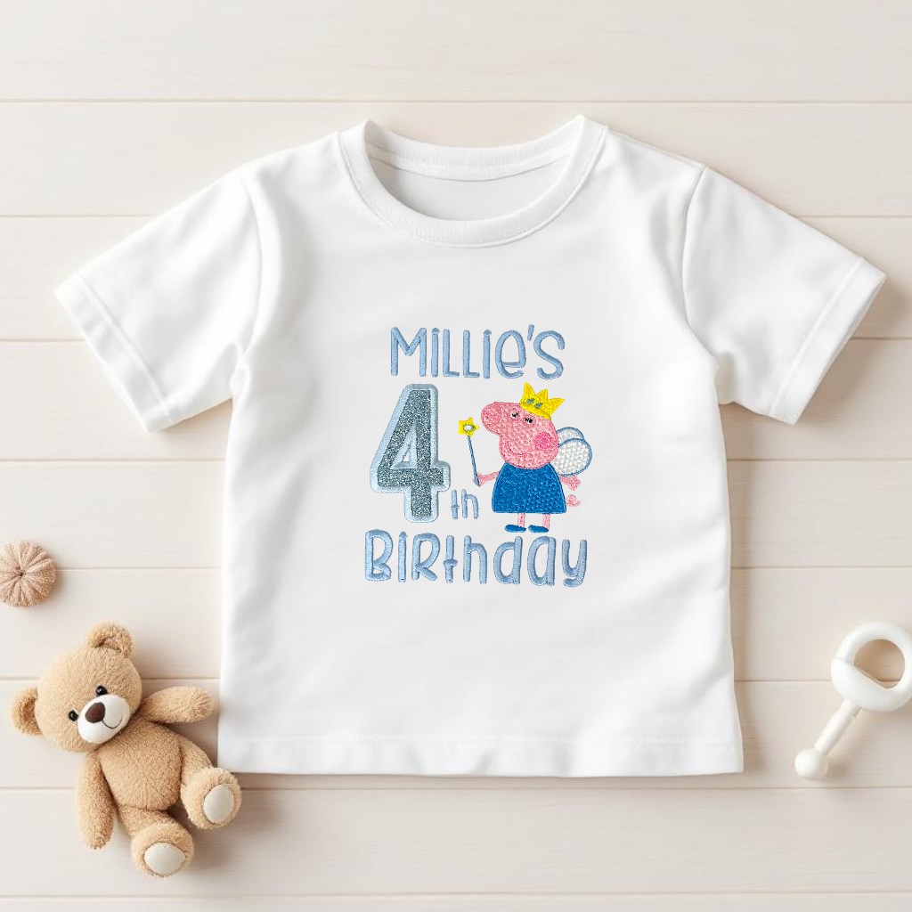 Make your little one's birthday extra special with this adorable made-to-order toddler top! Featuring Peppa Pig in a fairy costume with a wand, this cosy sweatshirt/tee can be personalised with your child’s name and birthday number for a unique and memorable outfit.